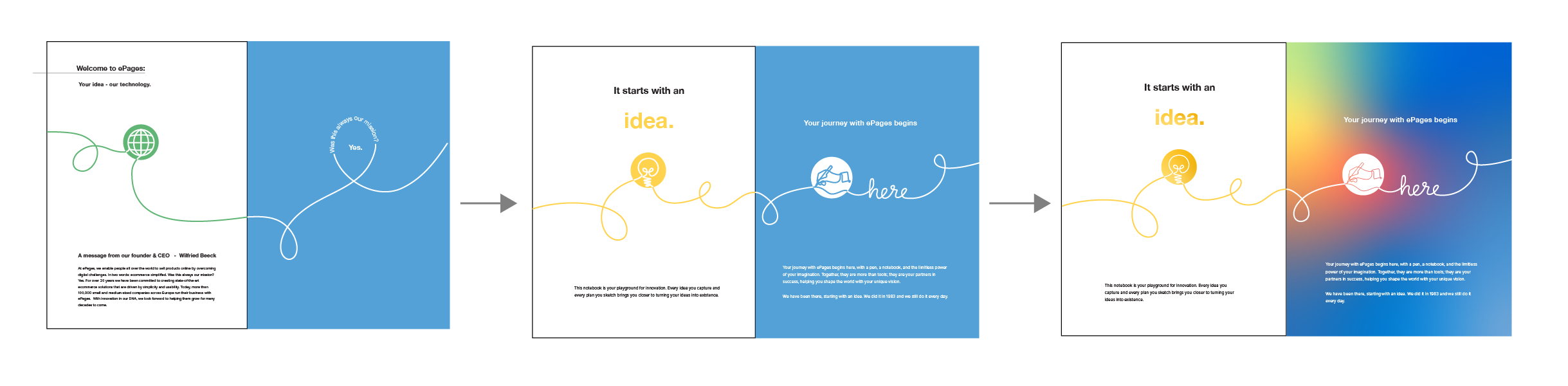 I eventually brought additional gradients into the booklet to try to update the branding and make the book feel more relevant, but I also think that the simplicity works quite well on it's own. You can see a little of the progression between drafts below.