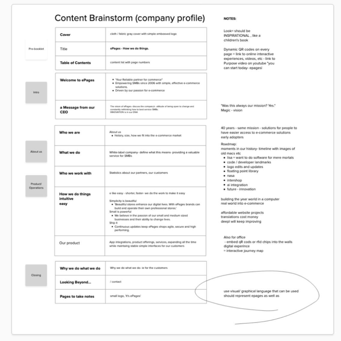 My primary contact for this project was the company CEO, who had a lot of strong opinions about the style of the book and its contents. I conducted several interviews to get a sense of the company spirit. I brought in sketches and drafts from an early stage to try to get a reaction, and see if that could help us iron out a clear brief and any requirements or things to avoid.