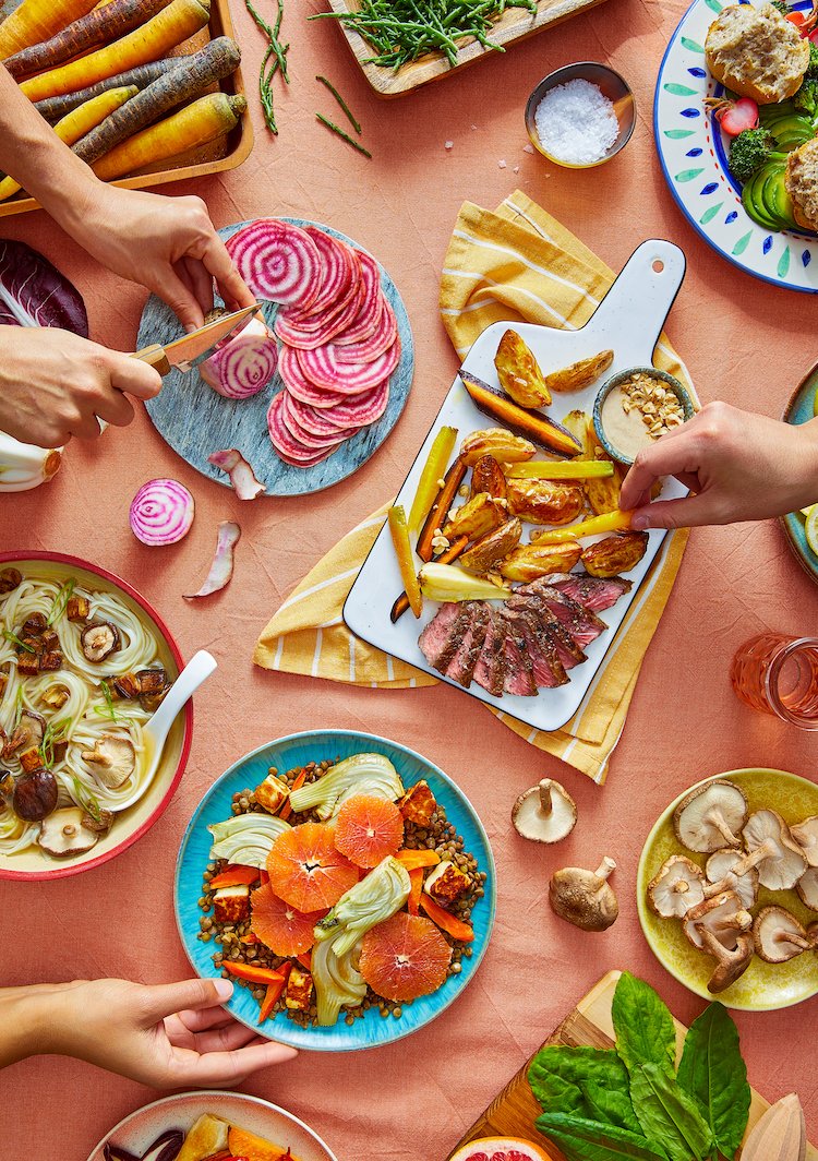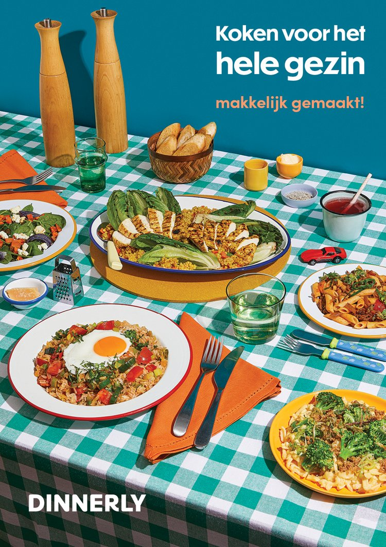Dinnerly was a lower price point brand more targeted at customers with families. The meals were simpler and had fewer fancy ingredients, but the quality was still quite good. This campaign was to market meal kit options that could be split with 3-4 people, rather than the standard delivery option of 2 people per dish. This campaign was fun to shoot, and I helped a bit in the studio picking props and color palettes for the table settings.