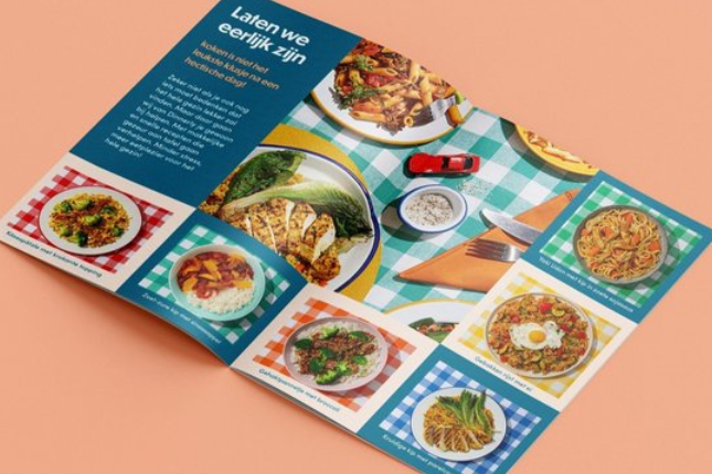 I worked with the photo team to create a fun, fresh, look with a focus on fresh ingredients for this campaign flyer. The goal was to bring a sense of a winter vacation in Spain to our customers living in Northern Europe. As usual the recipes feature seasonal vegetables.
